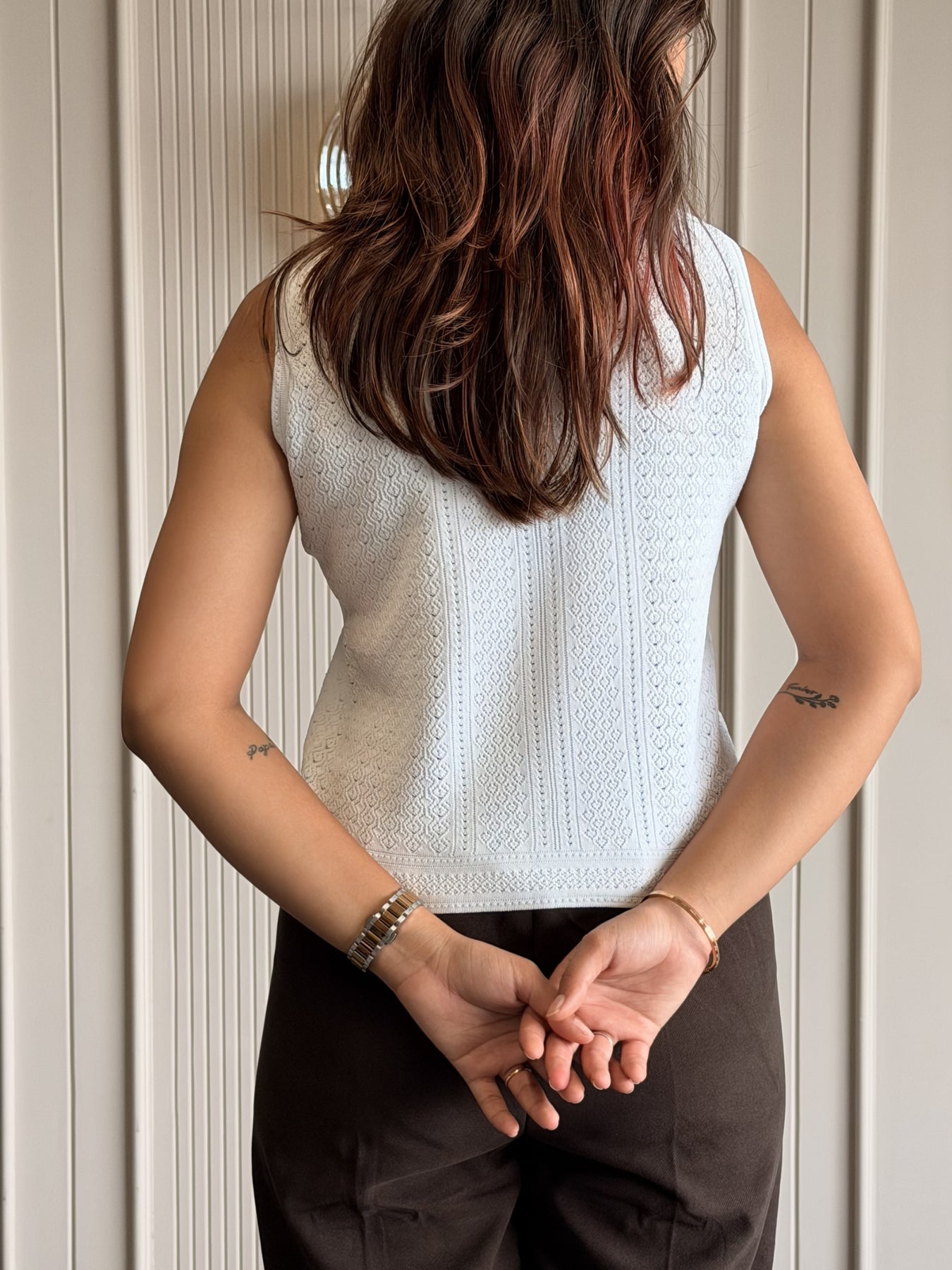Elevate your everyday essentials with our Textured High Neck Sleeveless Top — a perfect blend of sophistication and comfort. Crafted from a soft, stretchable knit with an intricate textured pattern, this top offers a flattering slim fit that enhances your silhouette while ensuring all-day ease.