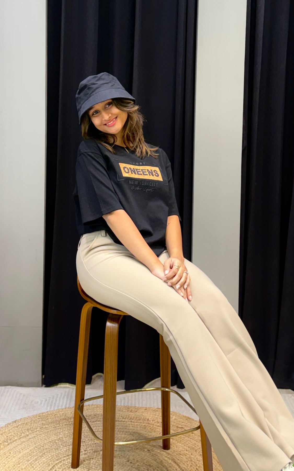 This black t-shirt by SHE’s is a gorgeous base for many outfits. It's an everyday essential that can be worn on chilling on weekends. Its casual design and high-quality cotton lends itself to layering, and the typography print is perfect for adding a bit of character to your wardrobe.